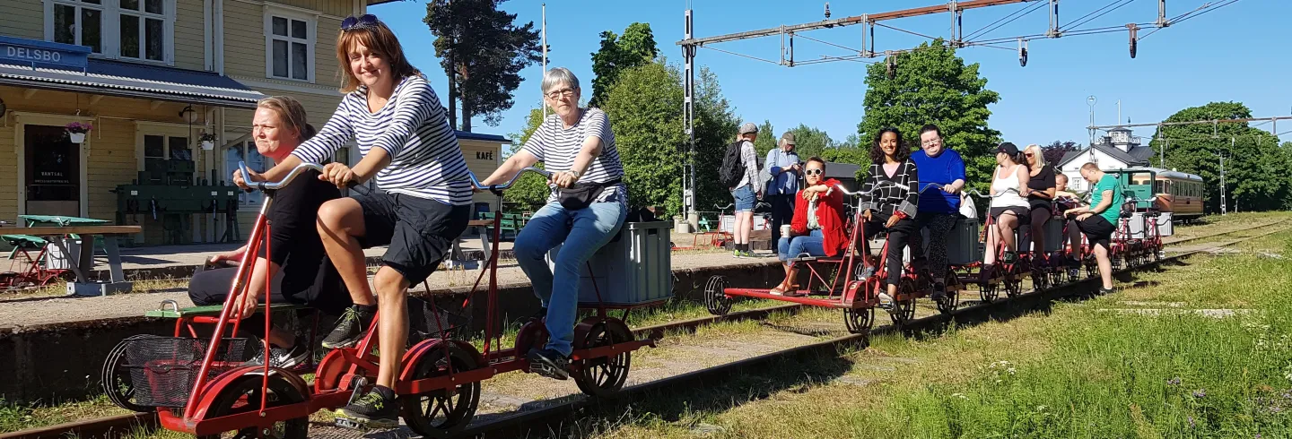 The rail trolleys can be reserved at Delsbo Station or via www.dellenbanan.se.